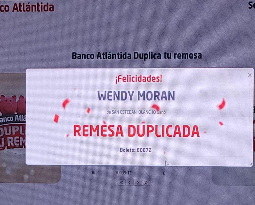 Durante la vigencia de la promoción se entregaron 1.8 millones de lempiras en premios, beneficiando a 70 clientes. Para Banco Atlántida, más que una promoción para agradecer la preferencia representa una oportunidad para impactar de forma positiva en la vida de sus clientes, tanto de quienes residen en Honduras como de aquellos compatriotas que se encuentran en el extranjero.