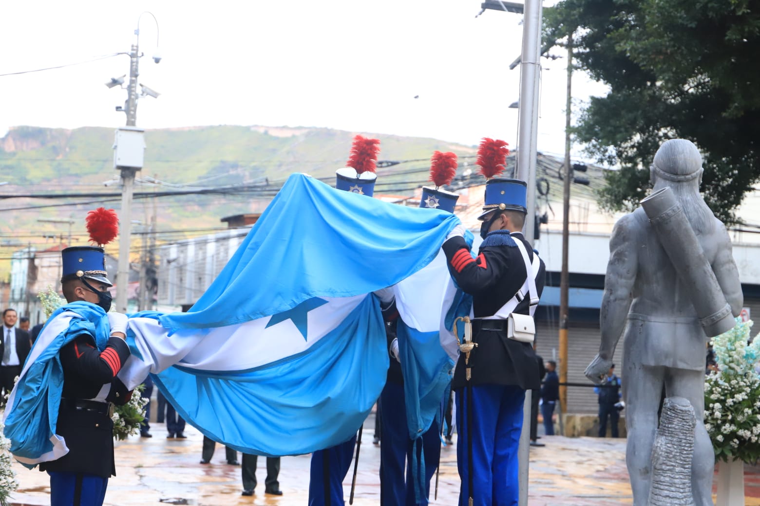 Durante el izamiento, en el que también se dió por inaugurado el mes de la Patria, que estará celebrando 202 años de independencia, el congresista Hugo Noé Pino hizo una simbólica lectura del decreto 84-1995, mismo que instituyó el 1 de septiembre como Día de la Bandera Nacional.