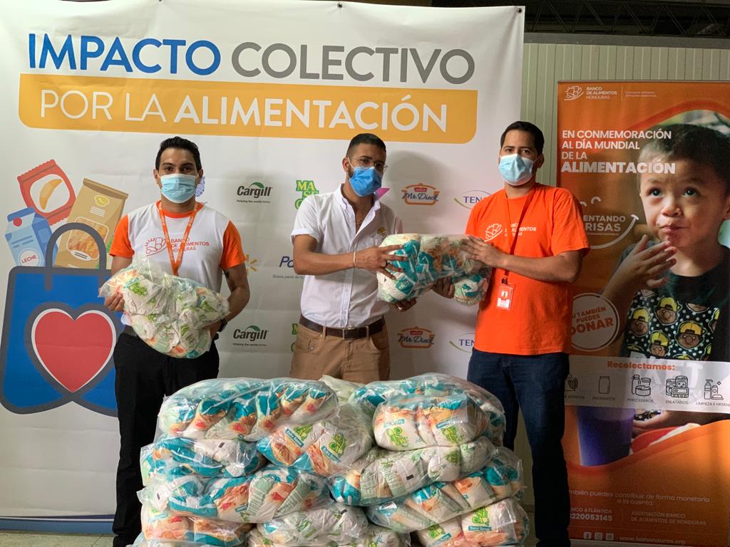 Las donaciones fueron entregadas al Banco de Alimentos de Honduras (BAH), que se encarga de llevar los productos a los hogares de más de 33,000 personas y 150 organizaciones asistenciales.