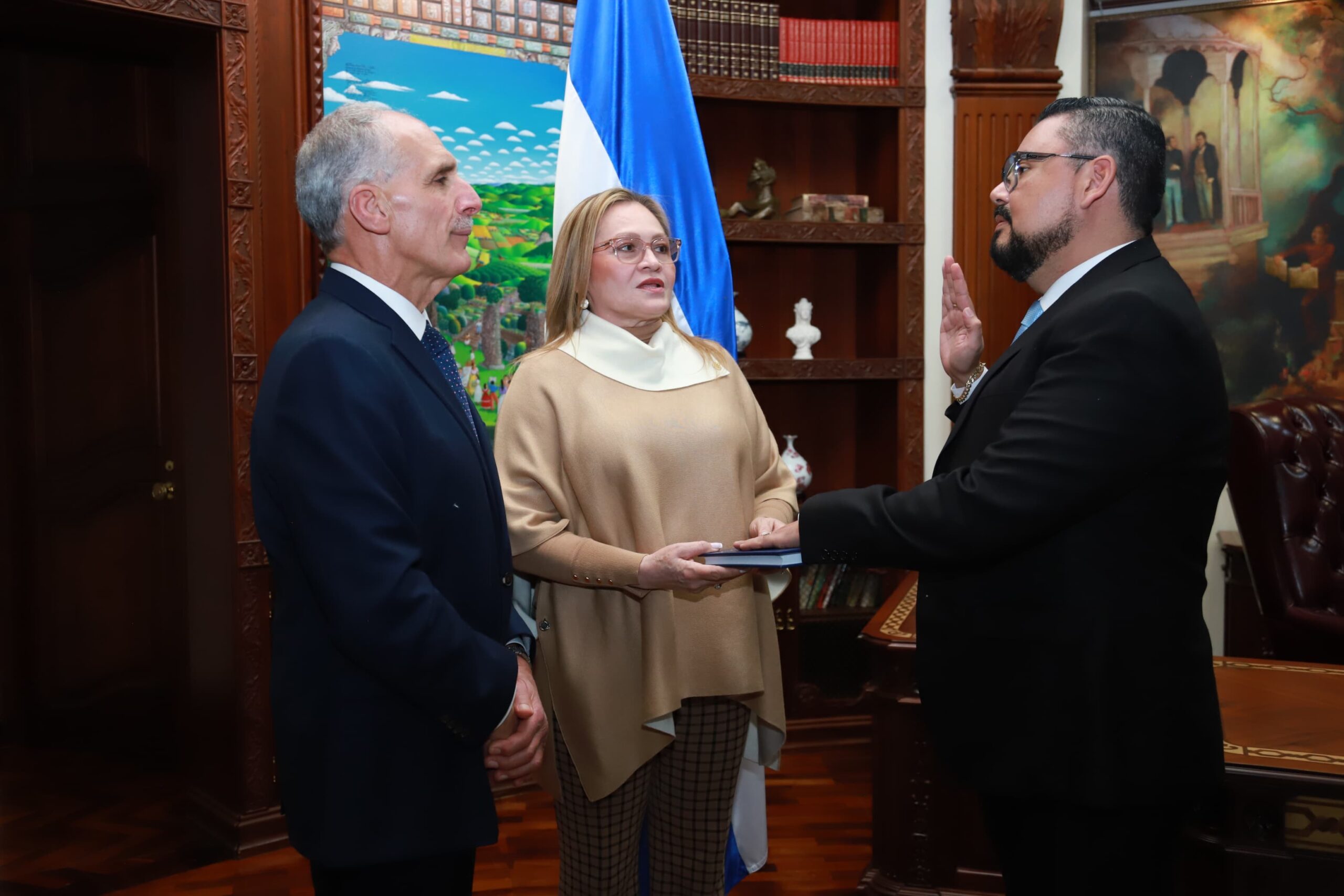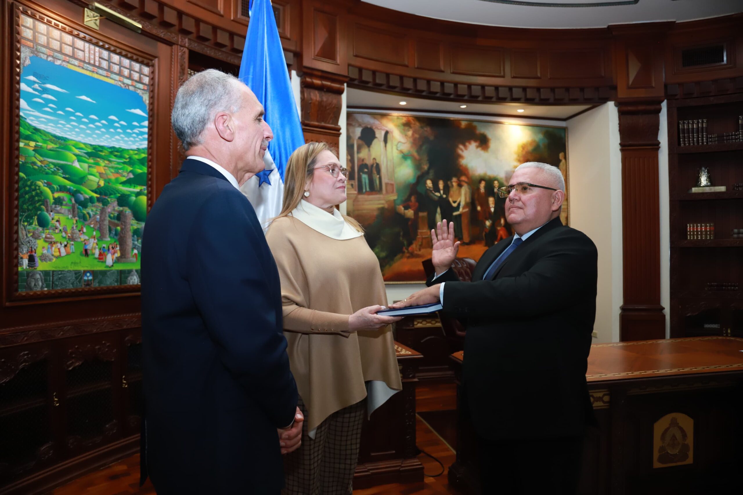 El presidente juramentó a Saúl Montes Amaya como vicepresidente del Banco Central de Honduras; José Leonardo Mejía Espinal asumió como director del Sistema Nacional de Emergencias 911; y Óscar Felipe García López fue juramentado como director ejecutivo del Instituto Hondureño de Geología y Minas (INHGEOMIN).