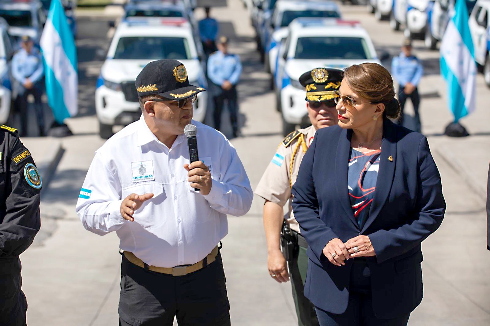 En su mensaje, la primera mujer presidenta expresó su deseo de “que estas unidades logren llevar esa imagen de seguridad que se está implementando desde esta Secretaría y (que) esto le permita al pueblo hondureño poder circular con mayor seguridad, con mayor confianza en las calles”.