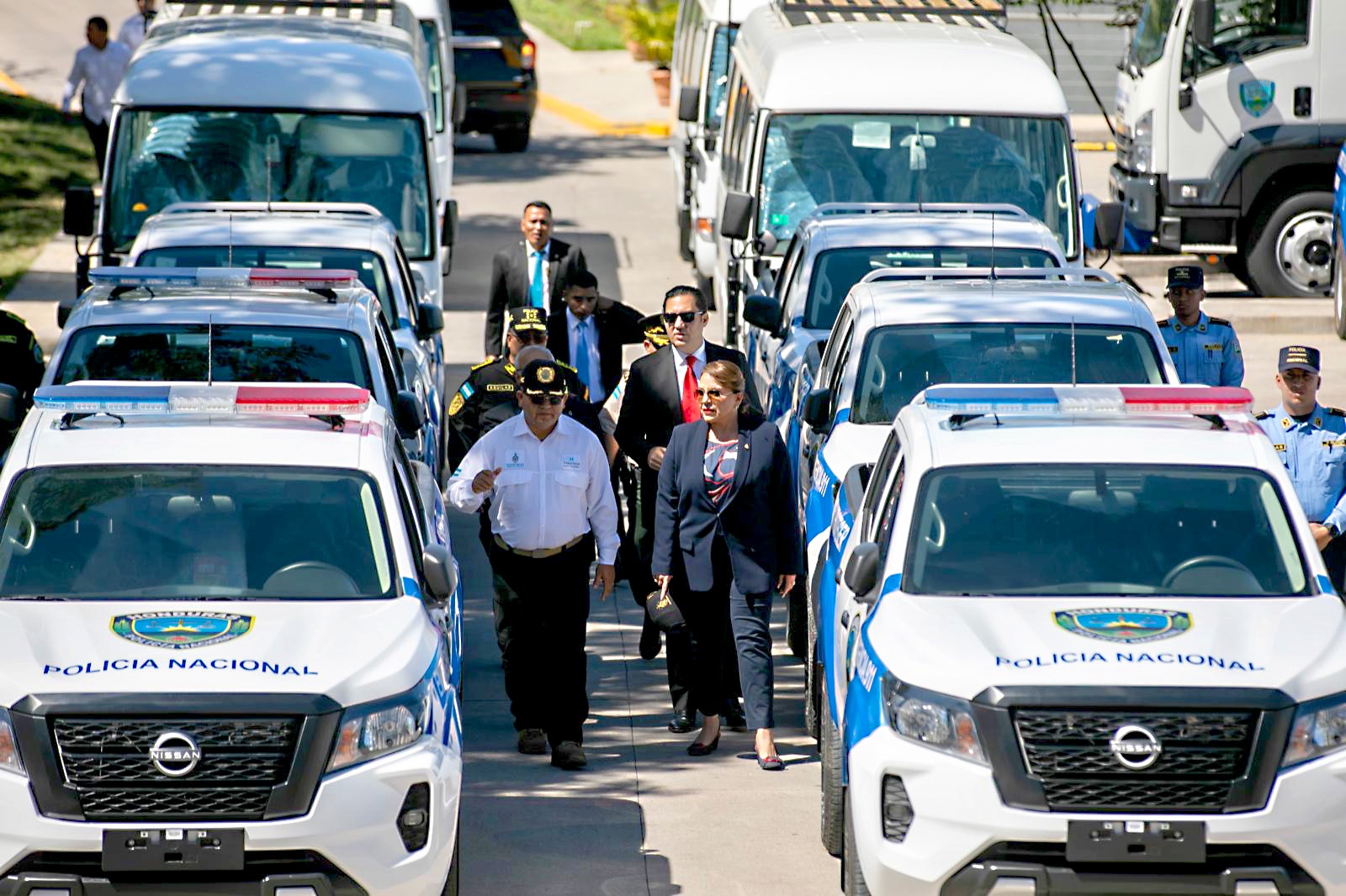 La presidenta Xiomara Castro entregó hoy a la Policía Nacional 60 radiopatrullas, 19 microbuses y 12 camiones con la finalidad de fortalecer la seguridad ciudadana y reforzar la capacidad operativa de la institución que tiene como desafío seguir disminuyendo la tasa de homicidios.